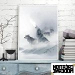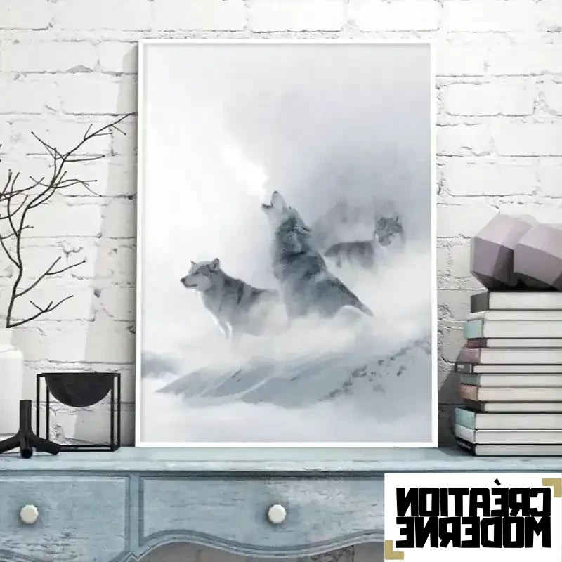 Plongez dans l’univers captivant du tableau noir et blanc loup, représentant la majesté et la force du loup dans sa plus pure essence. Ce tableau dépeint des scènes émouvantes et puissantes où un loup, dans une tempête, suit son chef de meute. Le chef, de son hurlement poignant, rassemble sa troupe pour affronter ensemble les intempéries.